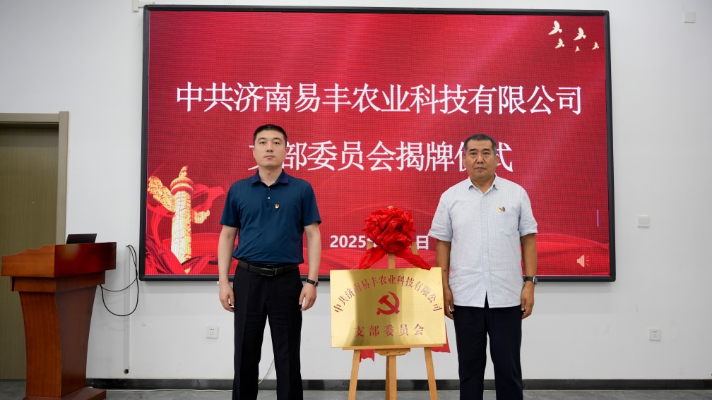 在熱烈的掌聲中,劉主任與張總共同為易豐農(nóng)業(yè)黨支部揭牌。這塊沉甸甸的牌匾,不僅標(biāo)志著濟南易豐農(nóng)業(yè)科技有限公司黨支部的正式成立,更將成為激勵每一位黨員牢記初心使命、勇挑重擔(dān)的象征。
