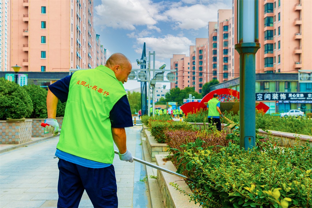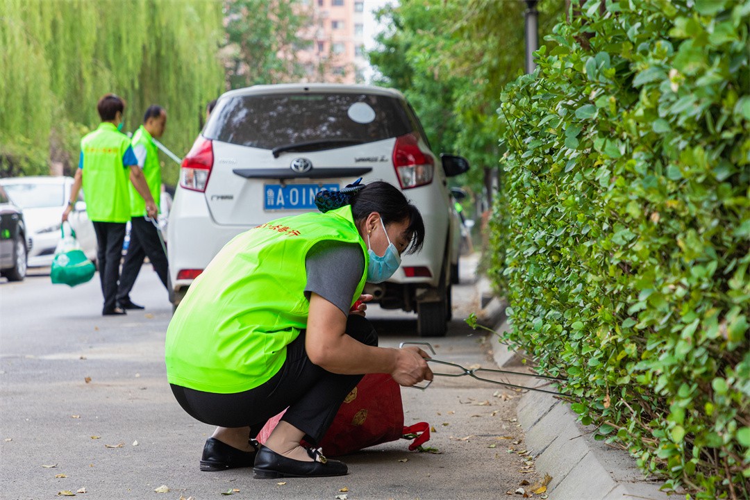 大家分工有序,帶著手持夾子、掃帚、鏟子等工具,地毯式清理了小區(qū)地面、花壇上、草坪里的紙屑、飲料瓶、雜草等垃圾,排查小區(qū)內(nèi)的衛(wèi)生死角。